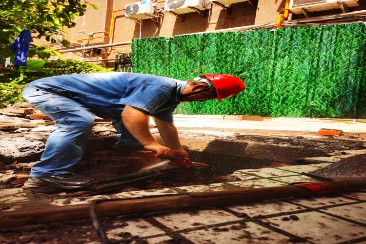 在這支水務(wù)藍(lán)隊(duì)伍里有這樣一位衛(wèi)士——管道維修工張國(guó)彪,他頭頂烈日,腳踏熱土,始終堅(jiān)守城區(qū)管道巡檢第一線。此刻的他正蹲在破裂水管旁,藍(lán)色工裝早已被汗水浸透,緊緊貼在背上。他抹了把臉,任憑汗珠混著泥水滑落,手里的扳手卻一刻沒停,這已是他今天處理的第二個(gè)搶修點(diǎn)。