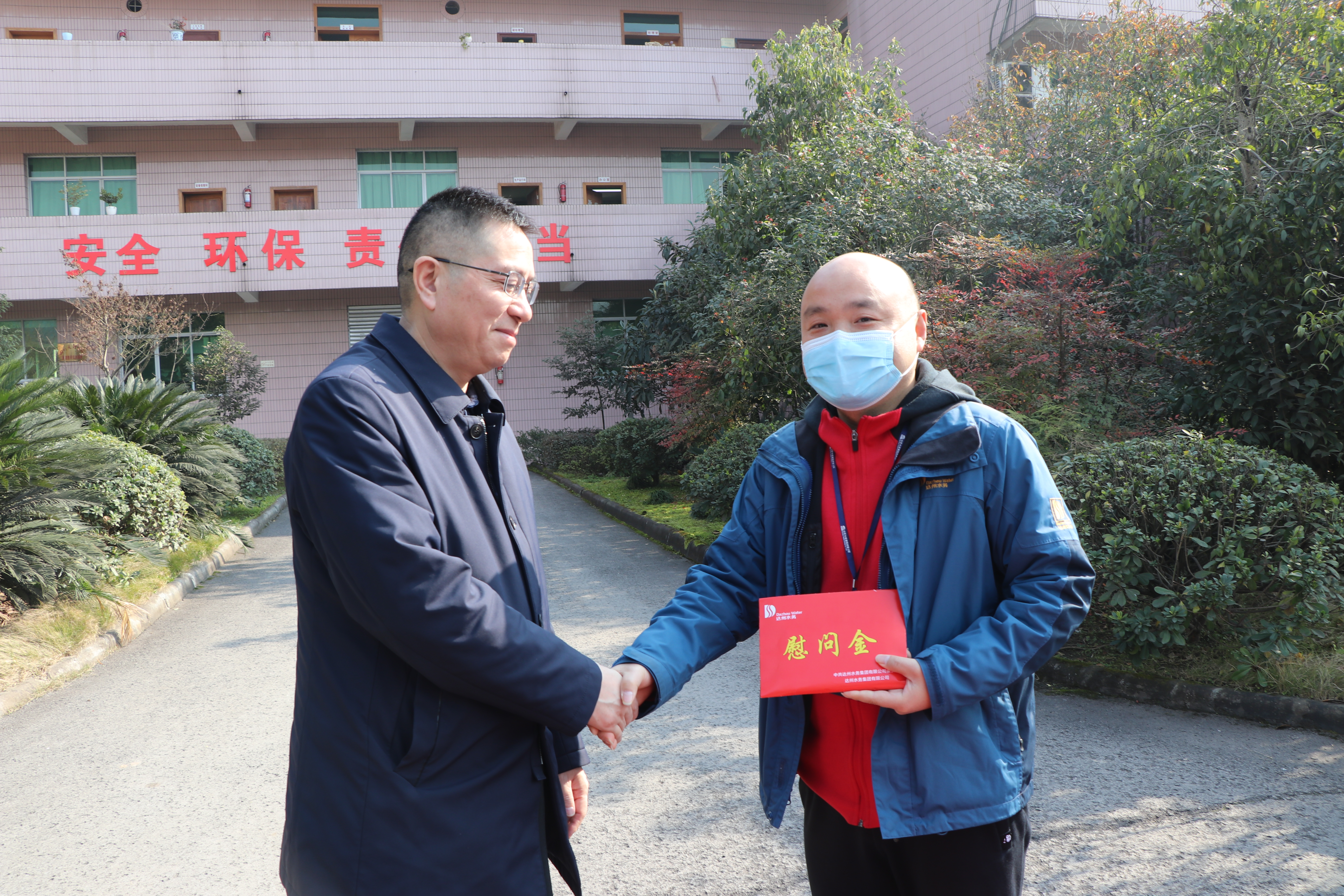 標題:集團公司領導赴惠泉污水開展節(jié)前慰問 發(fā)布時間:2021-02-10 集團公司領導赴惠泉污水開展節(jié)前慰問2月10日上午,董事長梁浩帶領集團班子一行5人,深入鮮家壩污水廠、周家壩污水廠開展節(jié)前走訪慰問。分別送來了節(jié)日的祝福和慰問金、慰問物資。并指出:要按照公司文件規(guī)定和要求,進一步做好春節(jié)安全生產和防疫防控相關工作,確保節(jié)日期間的安全穩(wěn)定。